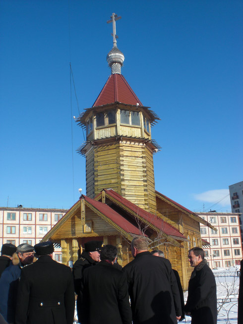 Часовня в Заозерске. Молебен по погибшим морякам. |